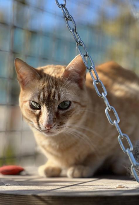 De Micho nos dicen esto: Es un gato SUPER bueno que apareció por nuestro campo. Entraba y salía y apenas se dejaba ver. Corría y huía al mínimo ruido o acercamiento. Con los meses, descubrimos donde se escondía y empezó a acercarse a humanos. A partir de ahí, cogió de la noche a la mañana una confianza enorme en nosotros (aunque se asusta de ruidos fuertes o repentinos). Es un gato muy sociable, muy cariñoso, demandante de mimos y comida. Se lleva muy bien con otros animales, perros incluidos, siempre y cuando no le atosiguen mucho. Con niños pequeños genial también, incluso se llevó tironcitos de cola y pellejito y 0 problemas... ni un mal gesto, ni un zarpazo... nada. Nunca nos ha mordido ni arañado, ni siquiera jugando. Es muy tranquilote y le encanta echarse la siesta al sol en sitio altos (como nuestro tejado).